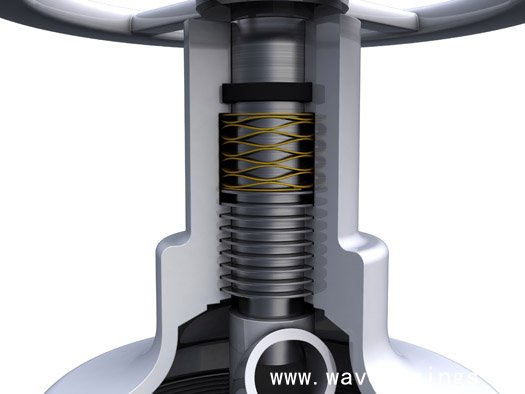 使用对顶波簧实现确切的压力。此装置下的气压会造成弹簧负荷增大,迫使板远离密封表面,从而提供泄压机制。当施加给弹簧的负荷降低时,装置即可再次密封。
